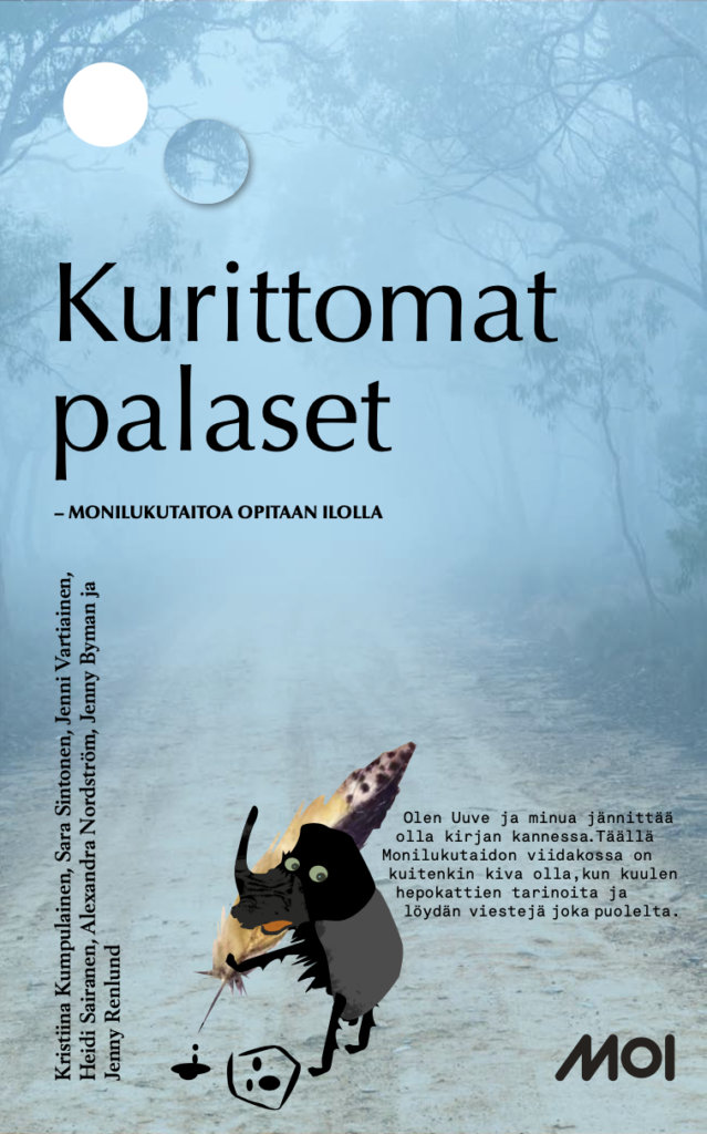 Kannen kuvitus ja taitto / Helsingin Yliopiston MOI-monilukutaitoa opitaan ilolla! / Opetus ja kulttuuriministeriön -kehitysohjelma / Kristiina Kumpulainen.