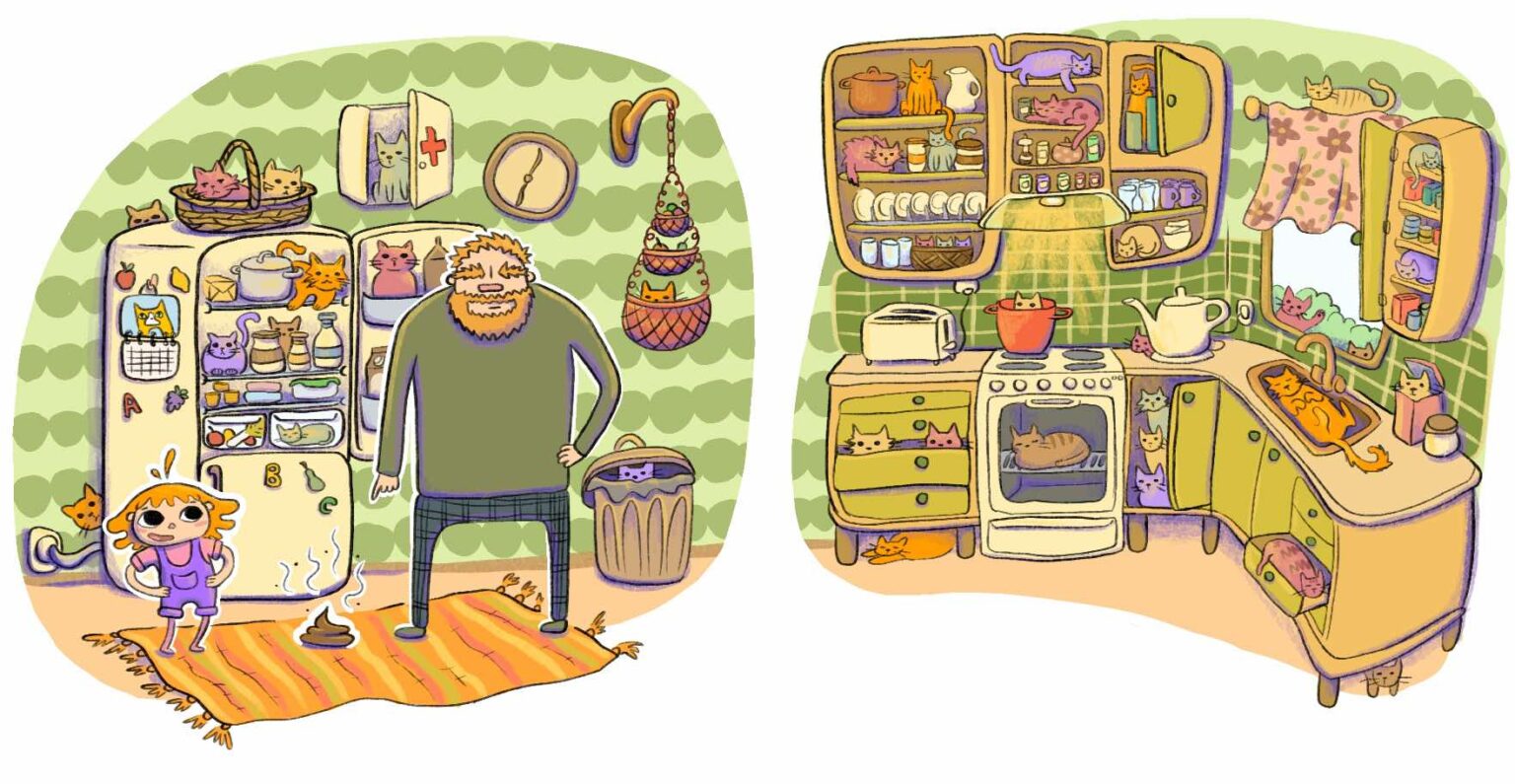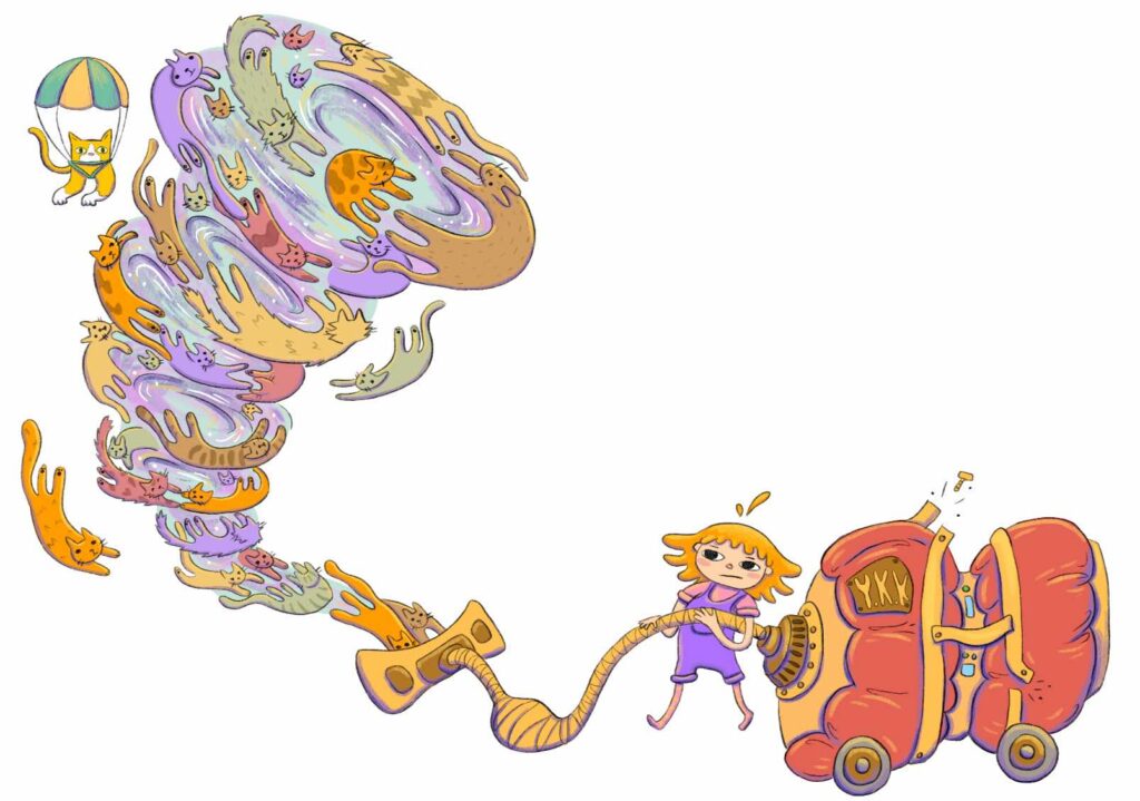 Tinkeri-Inkeri ja karseat kissabileet (lastenkirjan kuvitus) / Minerva kustannus