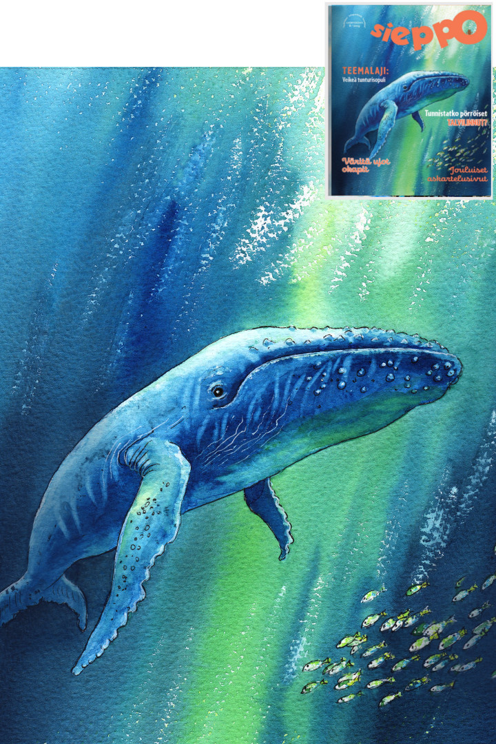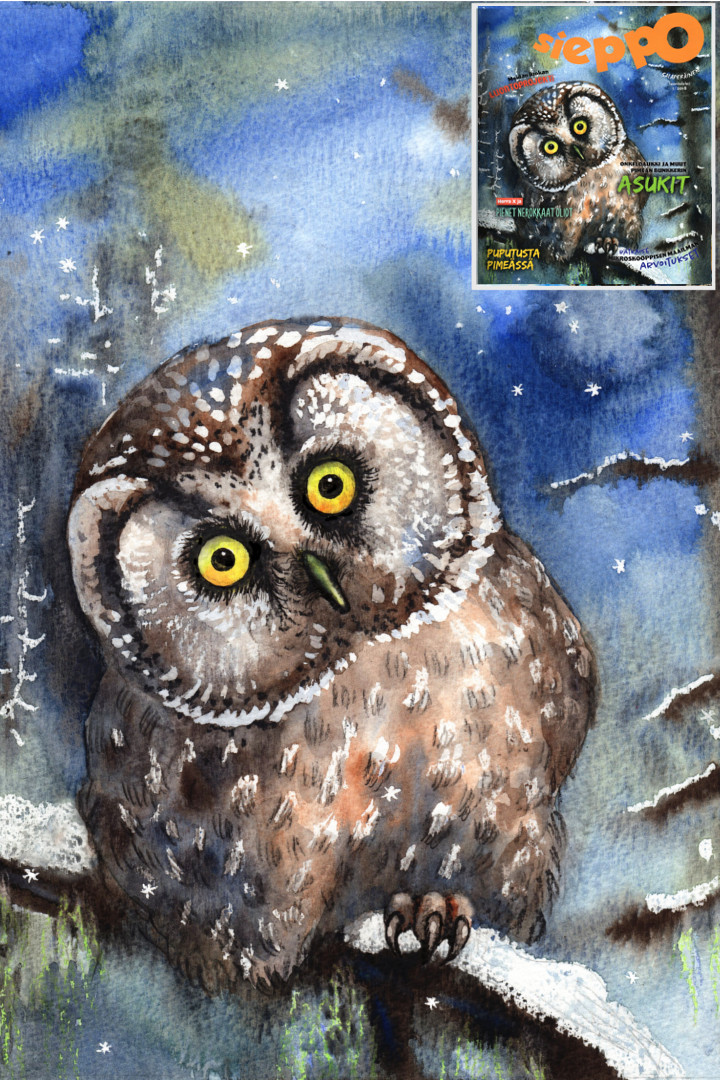 Kansi- ja aukeamakuvitus Sieppo-luontolehteen / Luontoliitto Ry