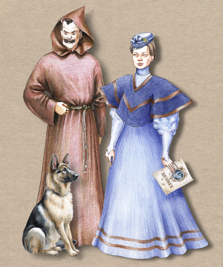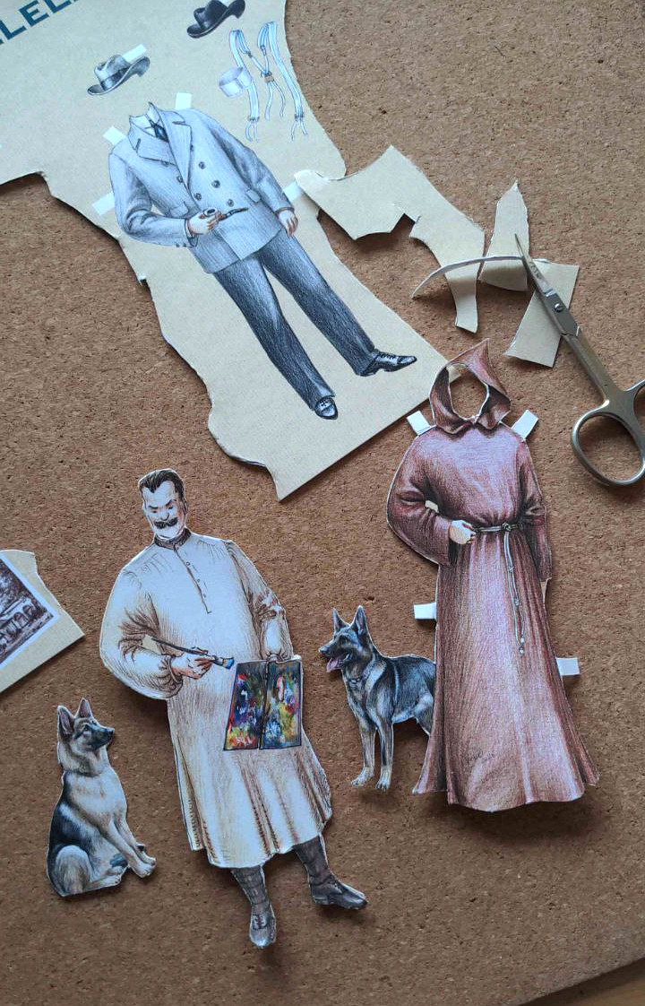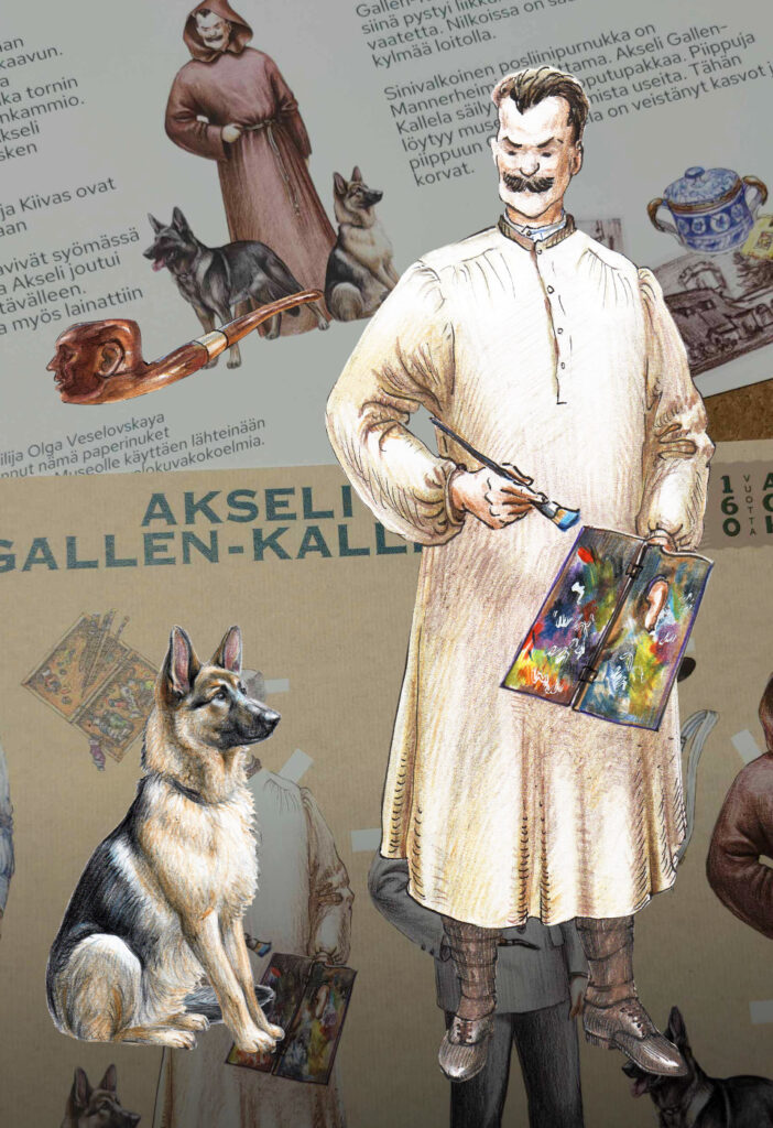 Paperinuket Akseli ja Mary Gallen-Kallelasta. Kuvitus Gallen-Kallelan museolle. 2025.
