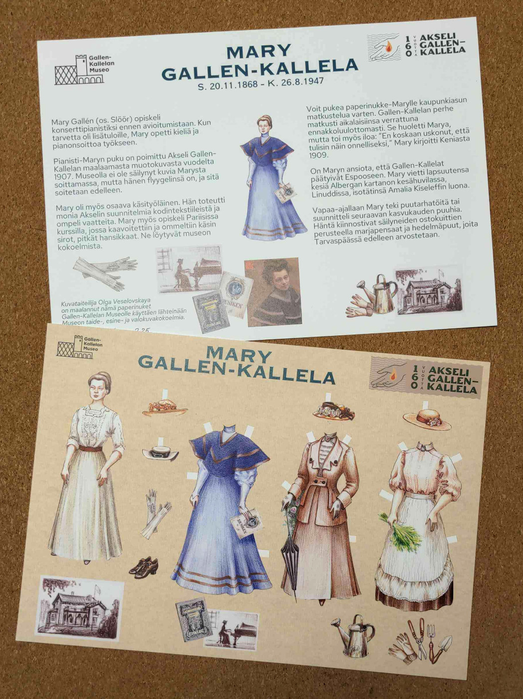 Akseli Gallen-Kallelan 160-vuotisjuhlavuoden kunniaksi kuvataiteilija Olga Veselovskaya toteutti akvarellitekniikalla sarjan paperinukkeja, jotka juhlistavat sekä Akselin että Mary Gallen-Kallelan monia rooleja. Paperinuket ja niiden asut valottavat Maryn merkitystä Tarvaspään historiassa sekä hänen puolisonsa taiteen taustavaikuttajana, ja tuovat esiin myös Akselin elämän ja taiteen eri puolia. Sarja julkaistiin osana museokauppatuotteita keväällä 2025.