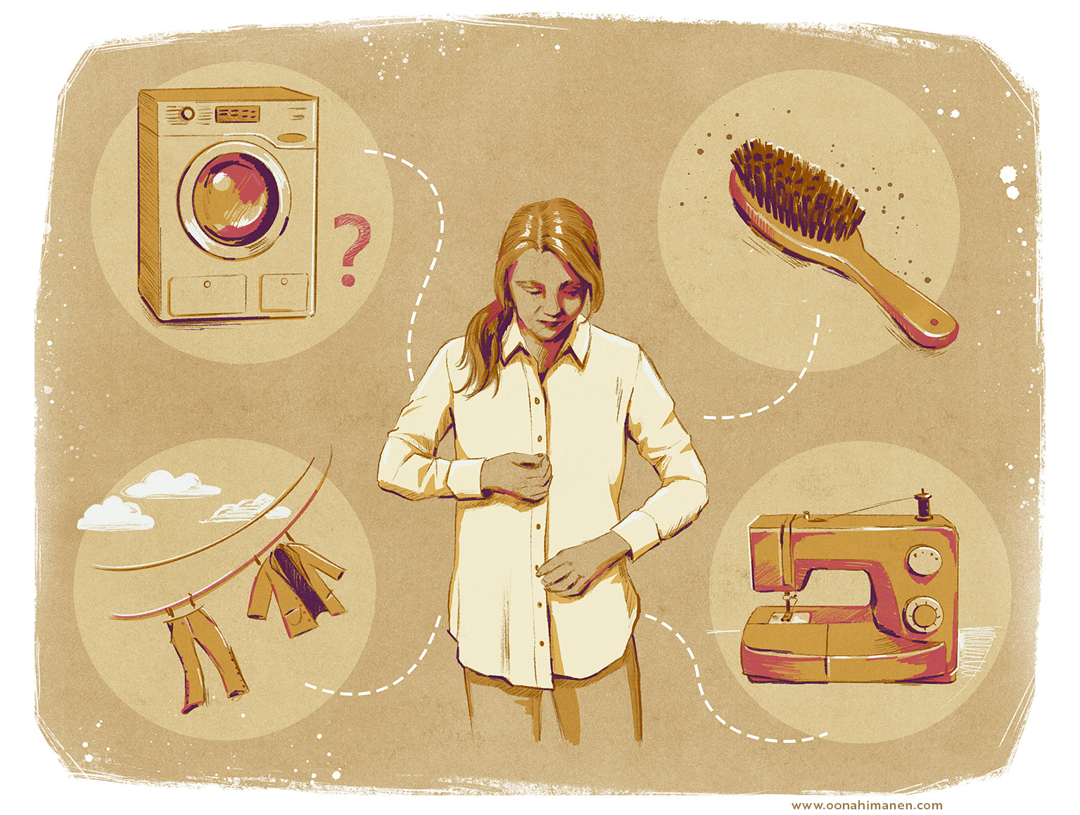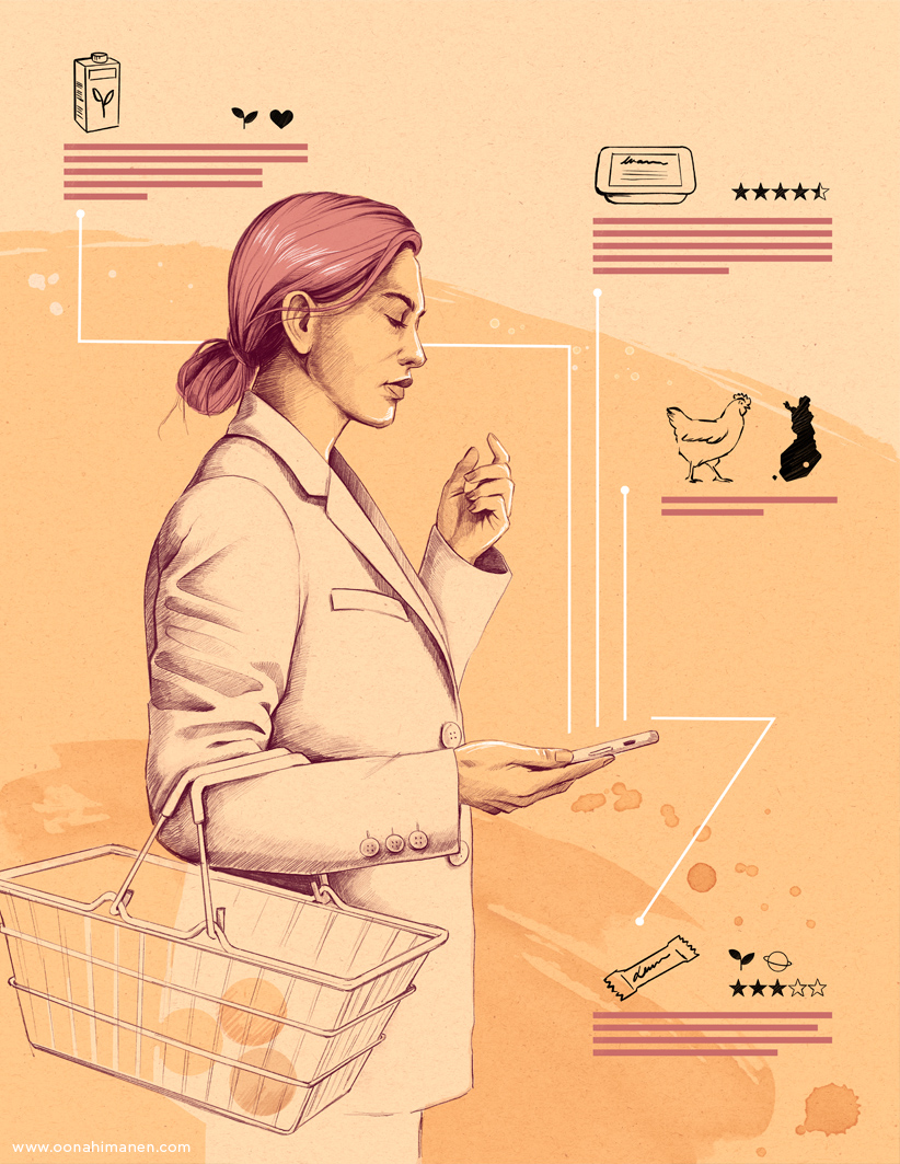 Työstän usein kuvituksiani digitaalisesti, mutta pyrin aina säilyttämään käsin tehdyn vaikutelman. Tyylissäni yhdistyy realismi ja maalaukselliset tekstuurit. Luontoaiheet ja ihmiskasvot ovat aina olleet tyylini keskiössä.