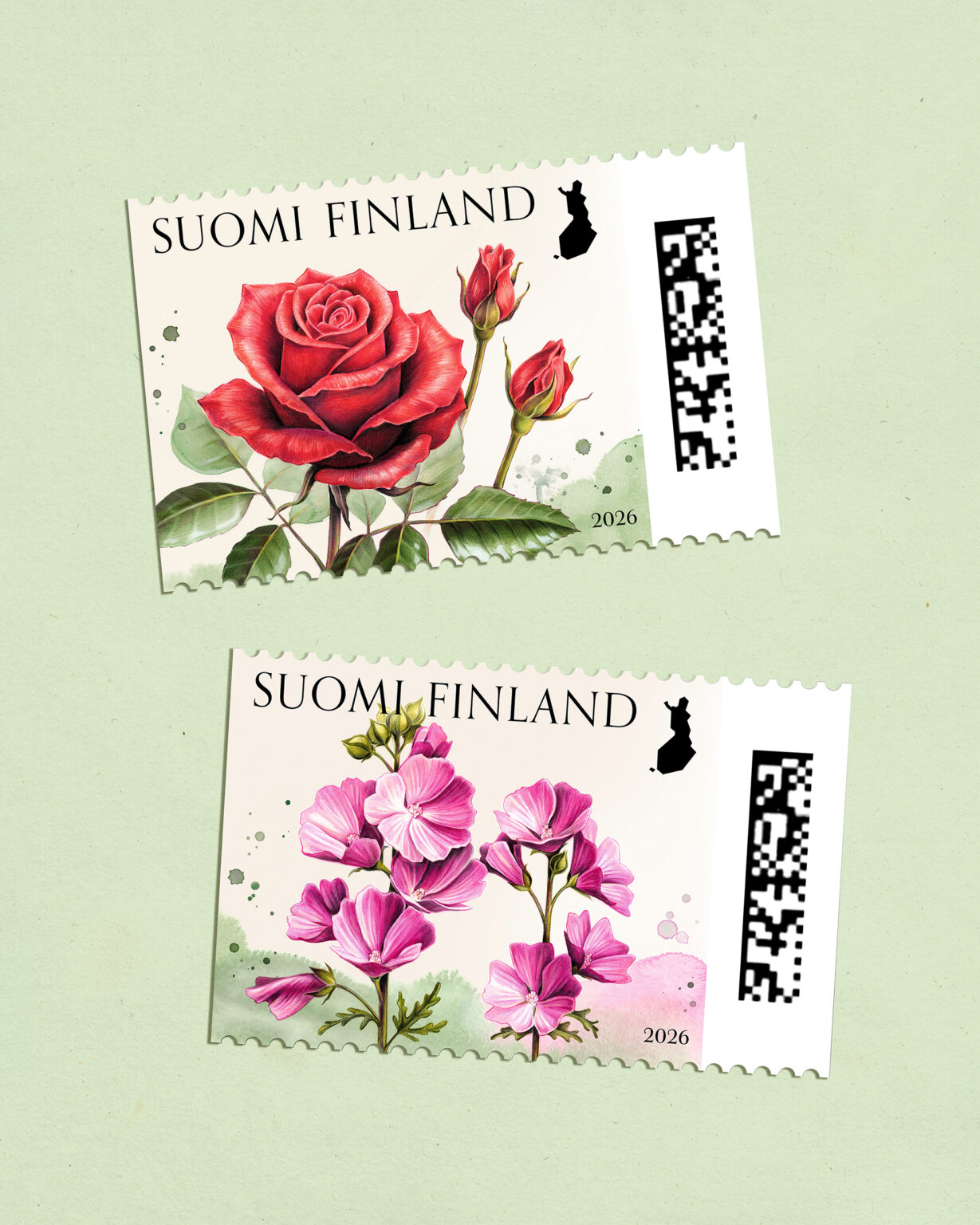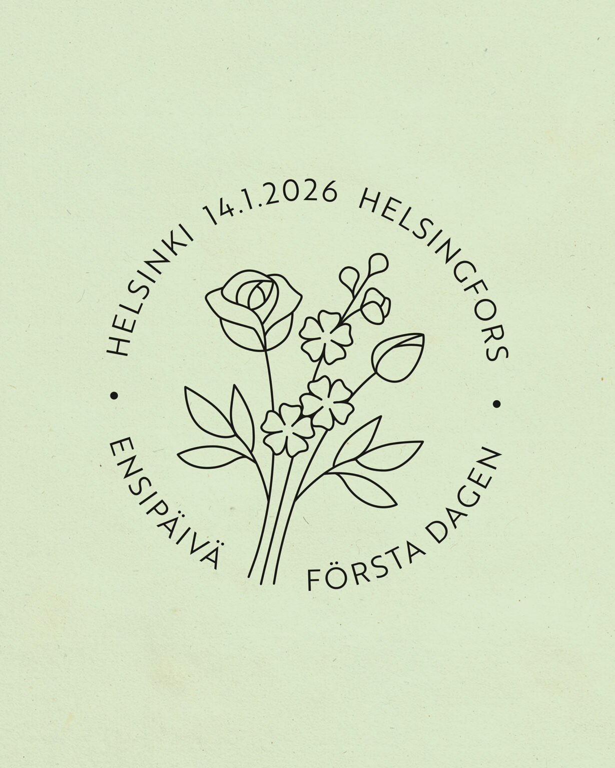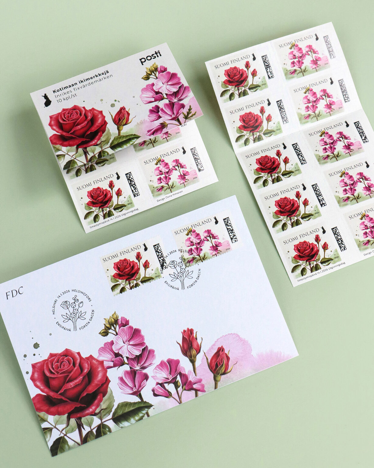 Graafinen suunnittelu ja kuvitus postimerkkeihin, arkkiin, ensipäivänkuoreen ja leimaan.