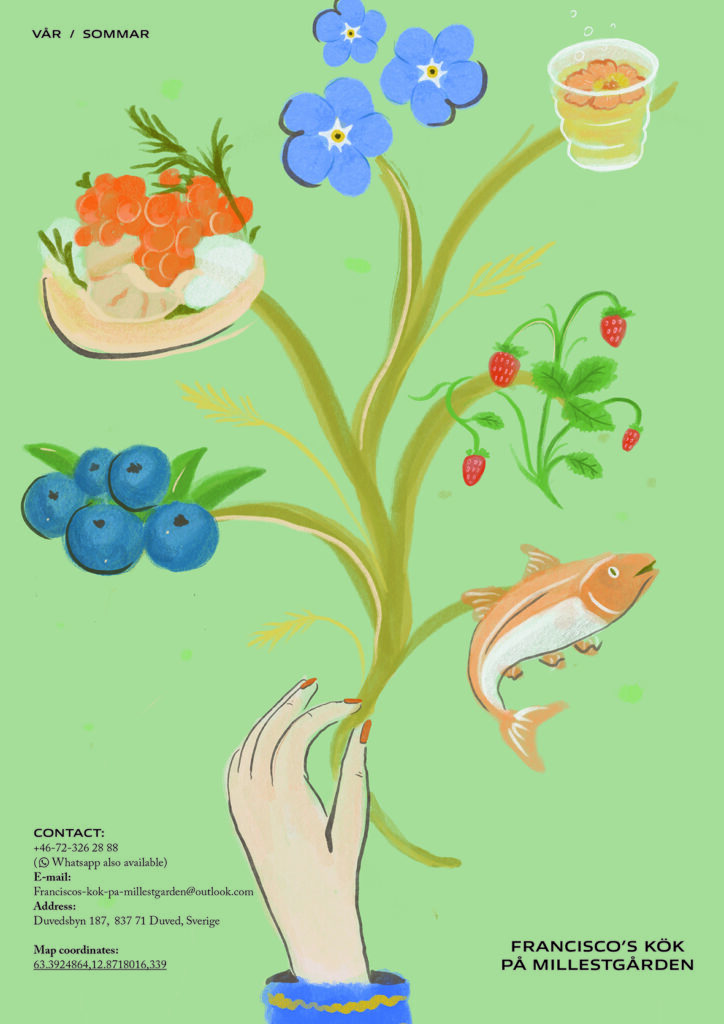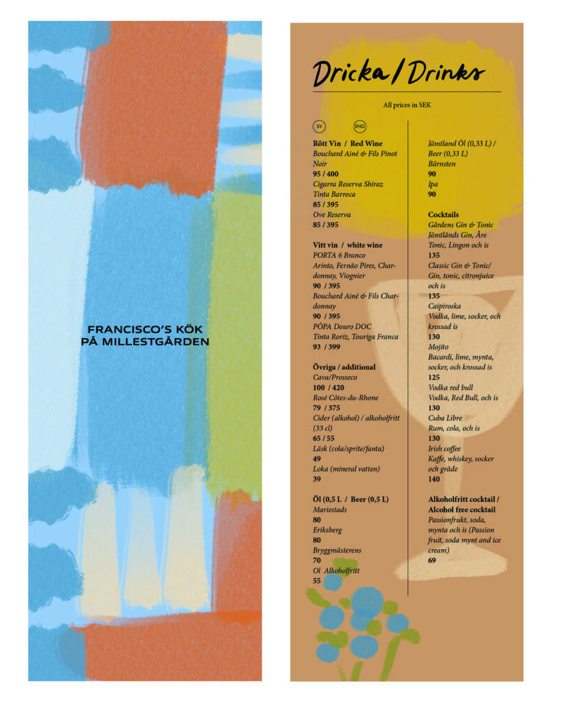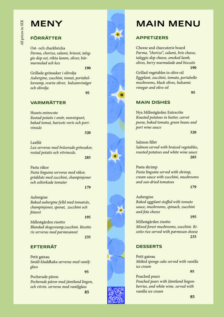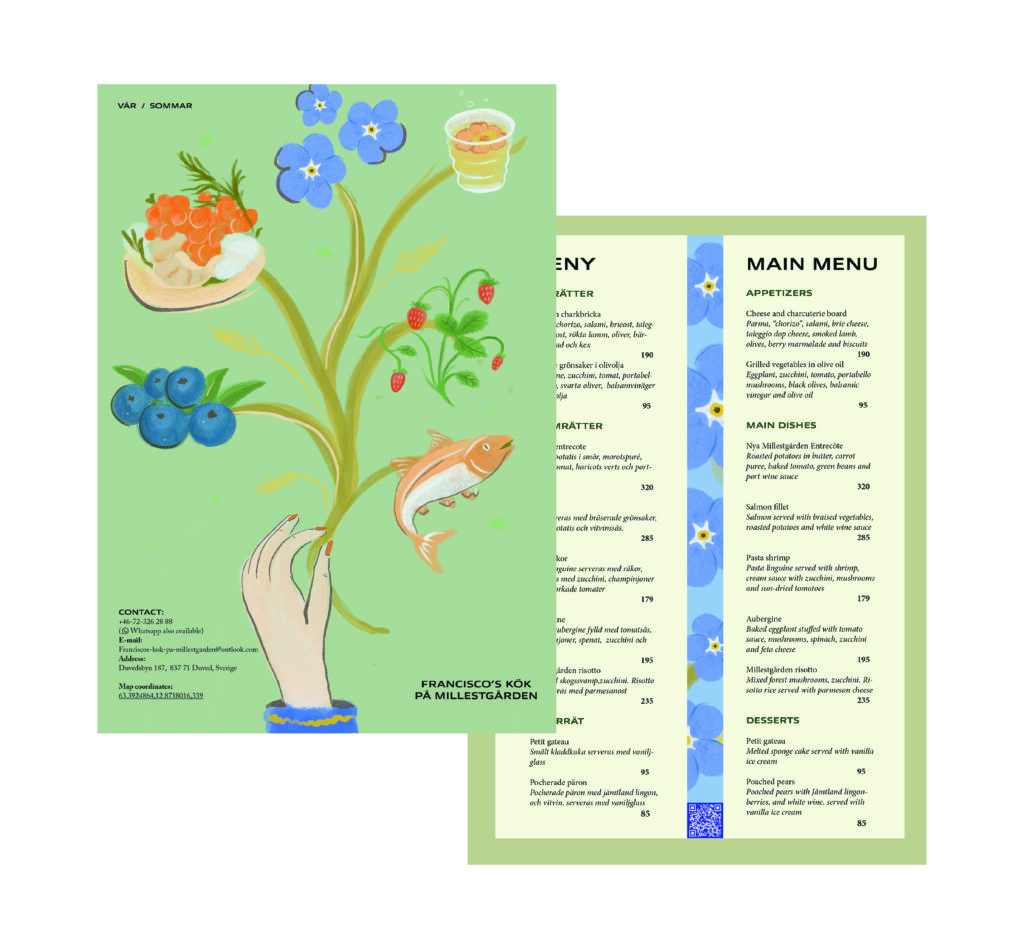 Ravintolan menun kuvitus / Millestgården Eco Lodge