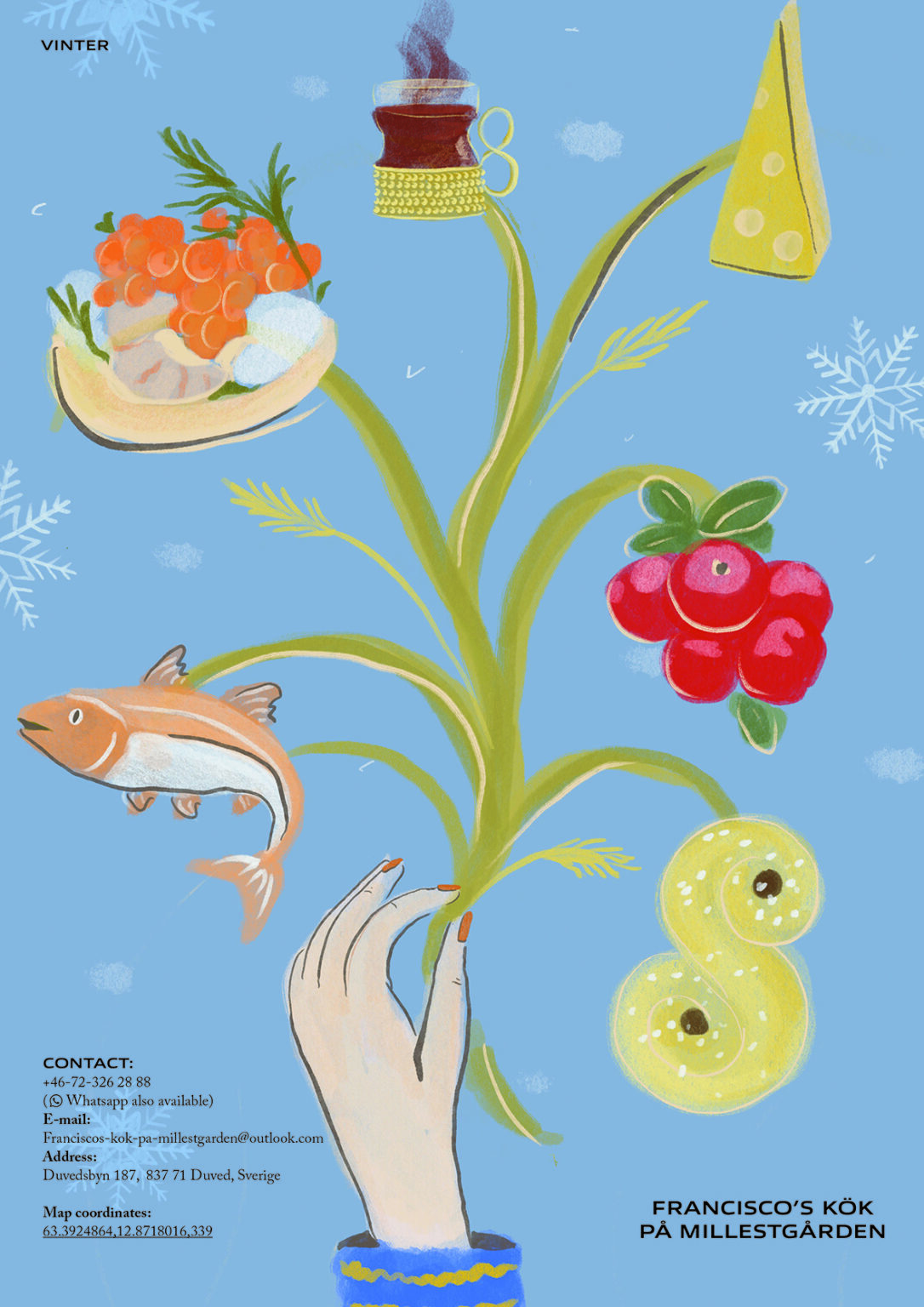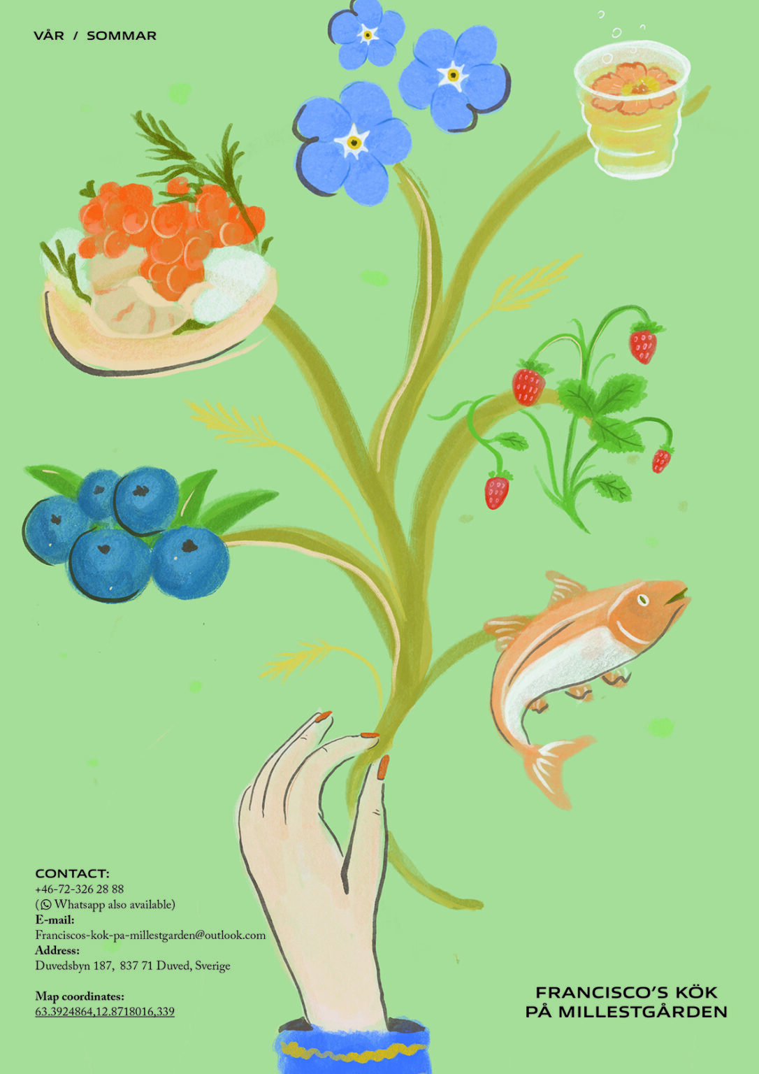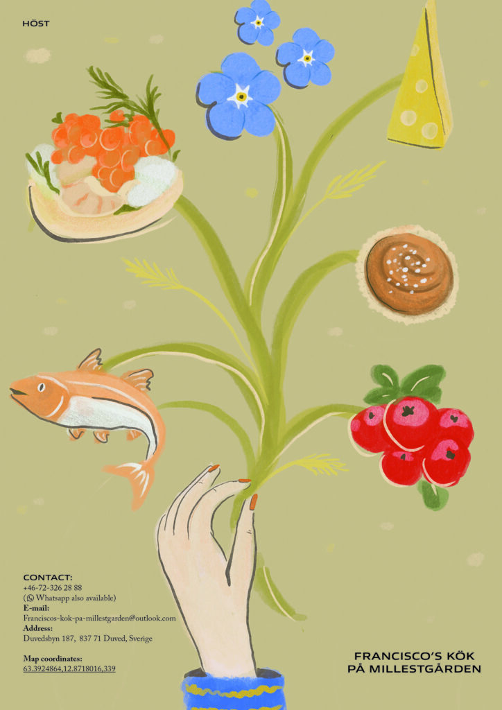 Ravintolan menun kuvitus / Millestgården Eco Lodge
