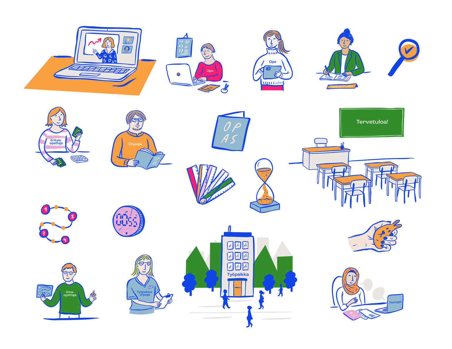 Hahmokuvituksia erilaisiin markkinointimateriaaleihin