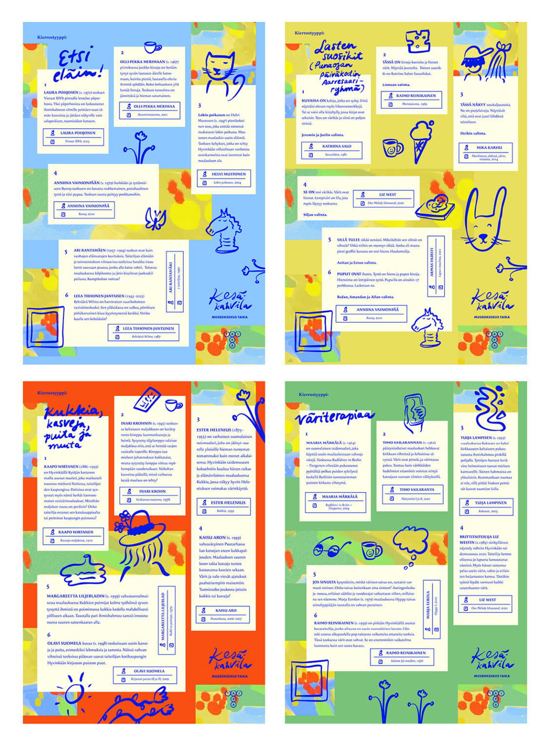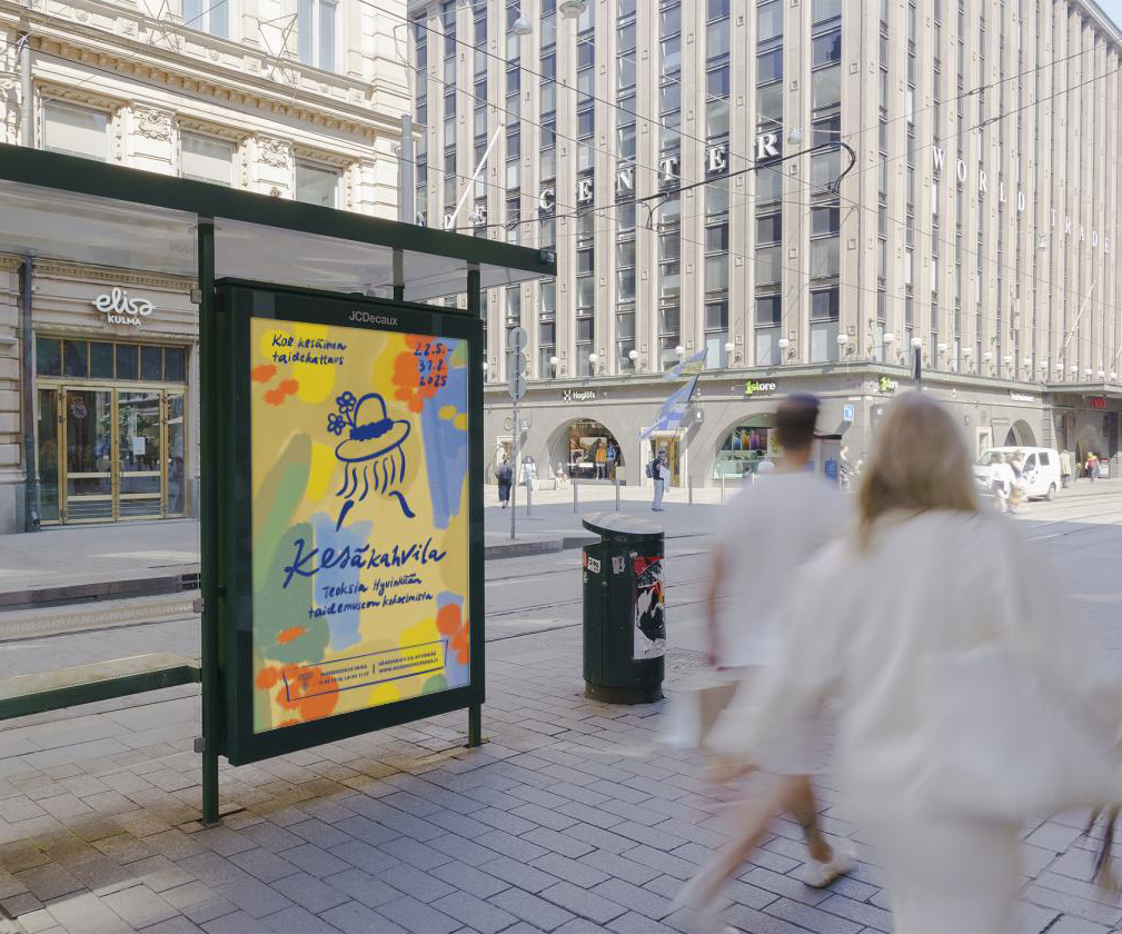 Suunnittelin Kesäkahvila-näyttelyn ilmeen ja sen eri materiaalit.