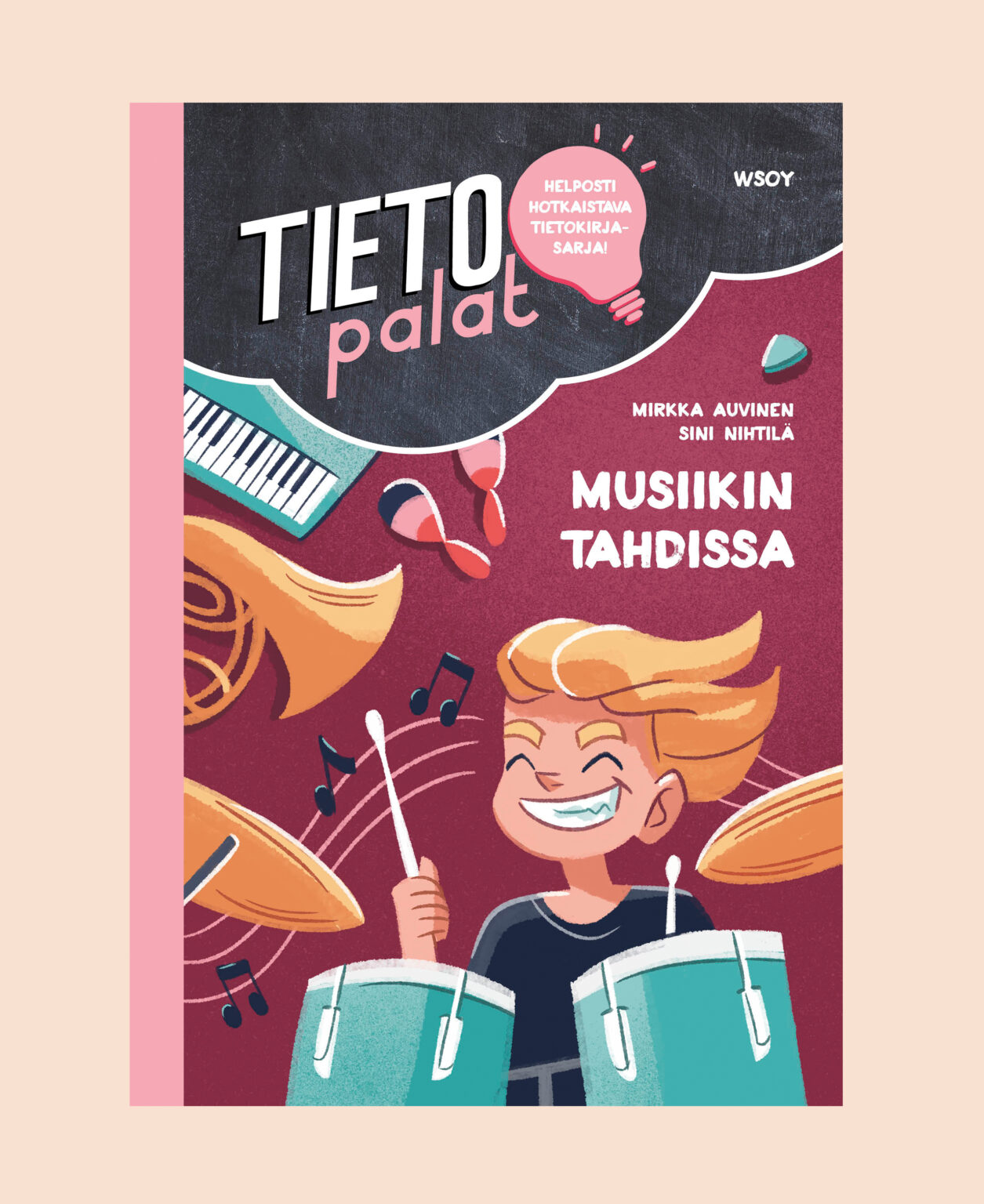 Kirjankuvitus alakouluikäisille suunnattuun Tietopalat: Musiikin tahdissa -kirjaan. Kirja julkaistaan syksyllä 2025.