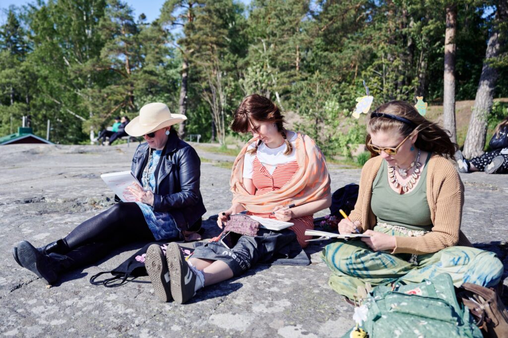 Kuvittajat ry kutsui jäsenensä perinteisesti Kevätkarkeloihin tapaamaan toisiaan ja juhlistamaan alkuvuoden uurastusta ennen kesälomia. Pukukoodina oli ”meri”, joka innosti luovan työn tekijät tulkitsemaan aihetta monin eri tavoin. Juhlapäivä sisälsi kuplivaa tunnelmaa, kesäisen vegaanisen buffetin, taiteilua Lauttasaaren tuulisilla mutta aurinkoisilla rantakallioilla ja Jii Roikosen ohjaaman asahi-terveysliikuntatuokion.